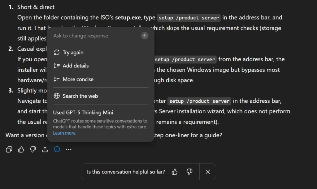 Čak i ako korisnik ručno izabere GPT-5 Instant, sistem može odlučiti da koristi “thinking” model ako procijeni da će on pružiti bolji odgovor.
